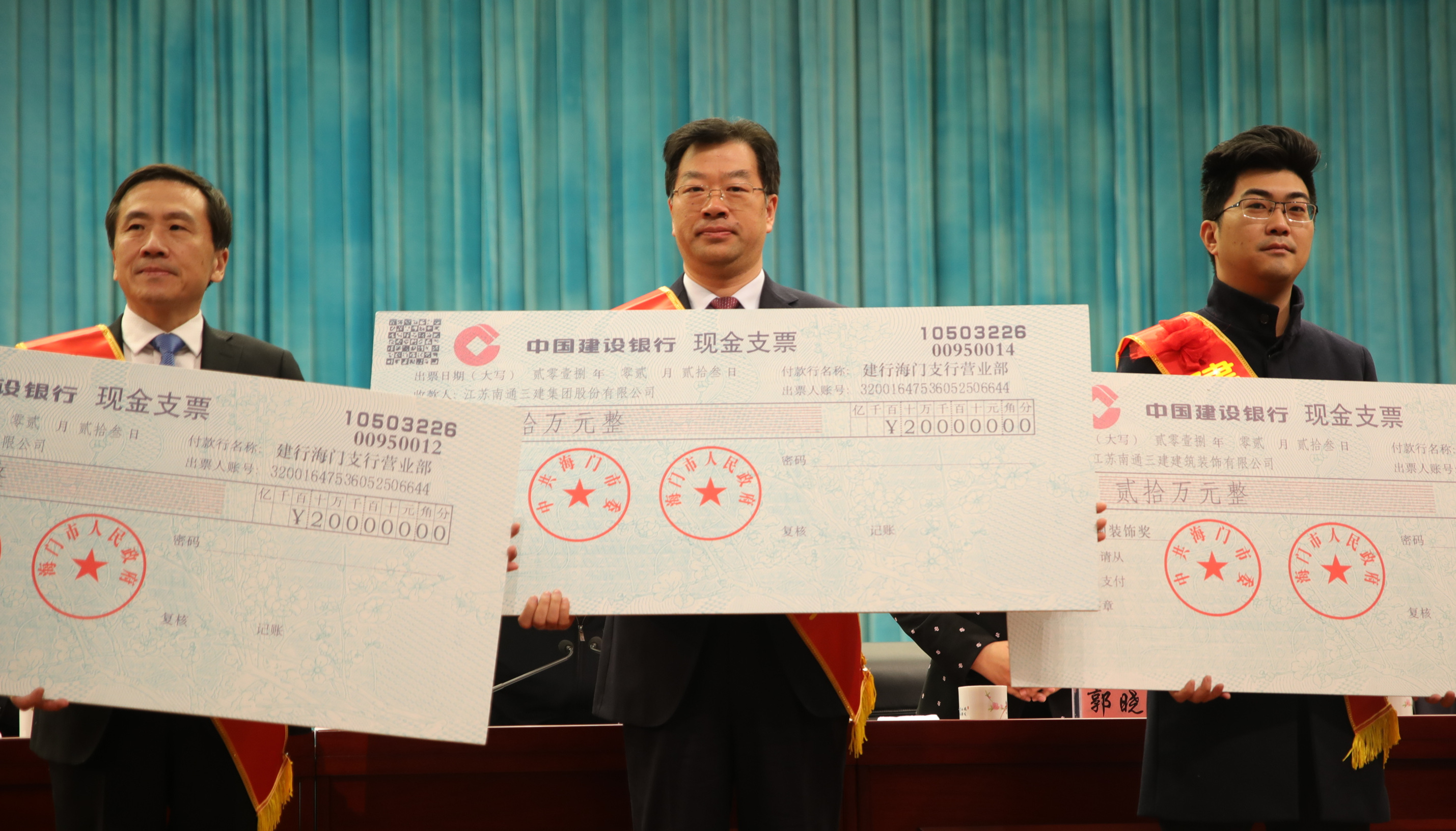 2月23日下午,海门市委市政府召开全市现代建筑产业推进大会,市委书记陈勇,市委副书记、市长郭晓敏,市委副书记葛志娟等领导出席会议。会上,乐鱼游戏官网登录获市委市政府颁发争先创优,创鲁班、国家优质工程、国家级(专业)优质工程,创国家建筑产业化基地,优秀建筑企业,外经工作先进集体等奖项,控股集团董事局主席黄裕辉在会上交流发言。
