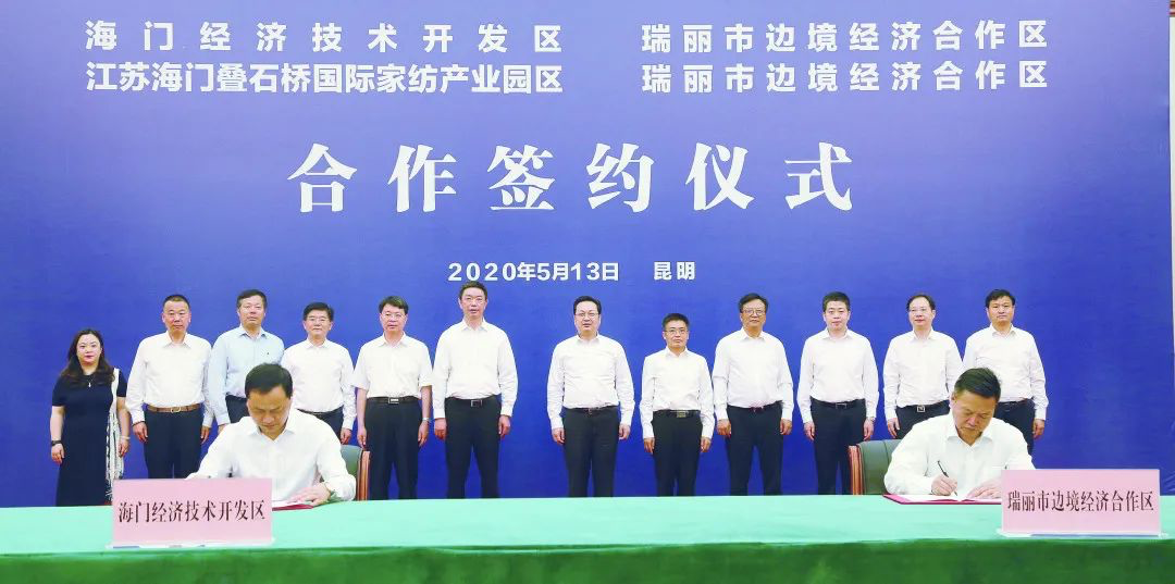 5月13日,海门经济技术开发区、叠石桥国际家纺产业园区与云南省瑞丽市边境经济合作区合作签约仪式在昆明举行。云南省委常委、统战部长、副省长张国华,海门市委书记陈勇,德宏州委书记、瑞丽试验区党工委书记、管委会主任赵刚,云南省商务厅厅长赵瑞君等共同见证签约。乐鱼游戏官网登录控股集团董事长黄裕辉作为市党政代表团企业家代表出席本次活动。