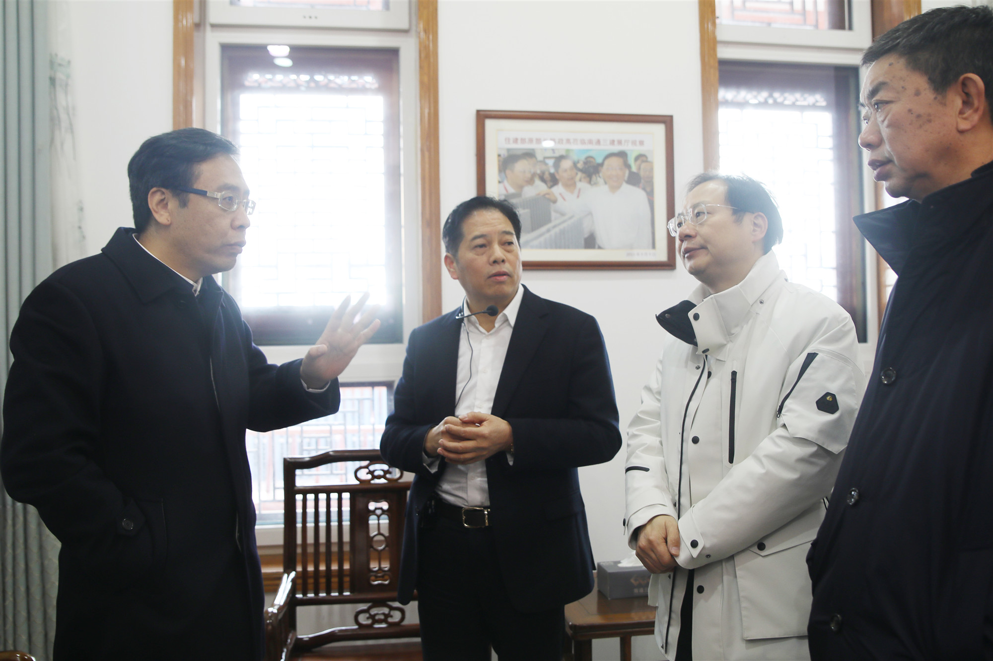随后在超低能耗被动式仿古建筑内,室外温度为3摄氏度的情况下室内温度恒定为18至20摄氏度,这是在不使用空调的条件下,通过保温墙体、节能门窗、新风系统为室内提供“恒温、恒氧、恒静、恒净、恒湿”的舒适体验。王晖市长特意询问关于节能门窗的型材种类、门窗强度、保温性、气密性、隔声性、综合能耗、市场价格的竞争力。公司研制的铝塑共挤节能门窗型材已获得多项国家发明专利,王晖市长希望南通市建筑行业主管部门组织调研,在政府投资的项目上先行先试,推动新型节能门窗在南通及海门市场落地产生效益。在看到产业园内随处可见的绿色建筑、3D打印产品、数字建造产品时,王晖市长当即要求相关政府部门要关心企业科技成果,要走进产业园,给予政策指导、支持项目落地,推动城市更新及新型城镇化建设科技创新发展。