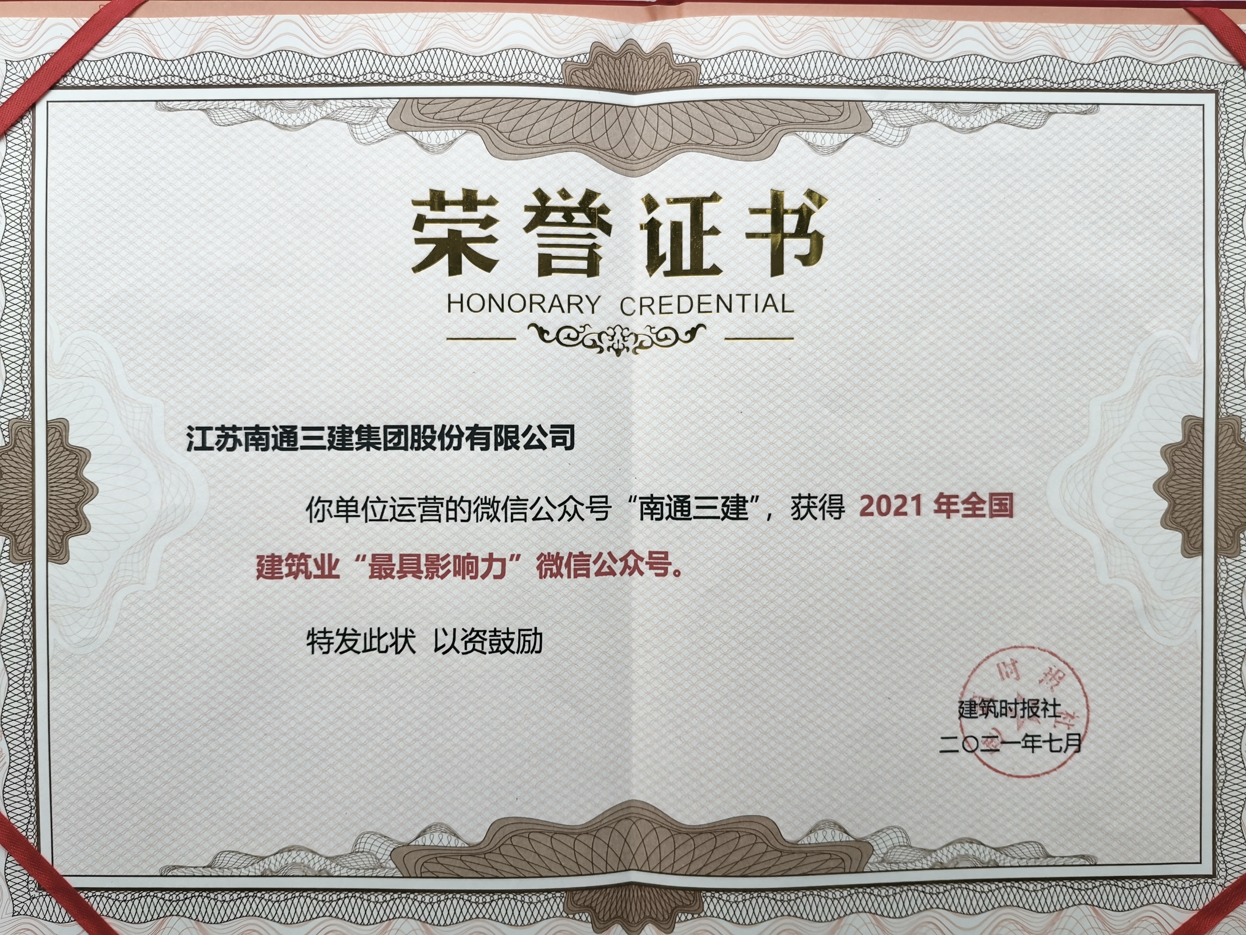 迭代传播方式,赋能品牌价值。7月16日,由建筑时报社主办的2021年建筑业微信公众号运维经验交流研讨会暨全国建筑业优秀公众号颁奖典礼在扬州举行。会上,“乐鱼游戏官网登录”企业官方微信公众号凭借优质的内容和出色的运维获评2021年全国建筑业“最具影响力”微信公众号。