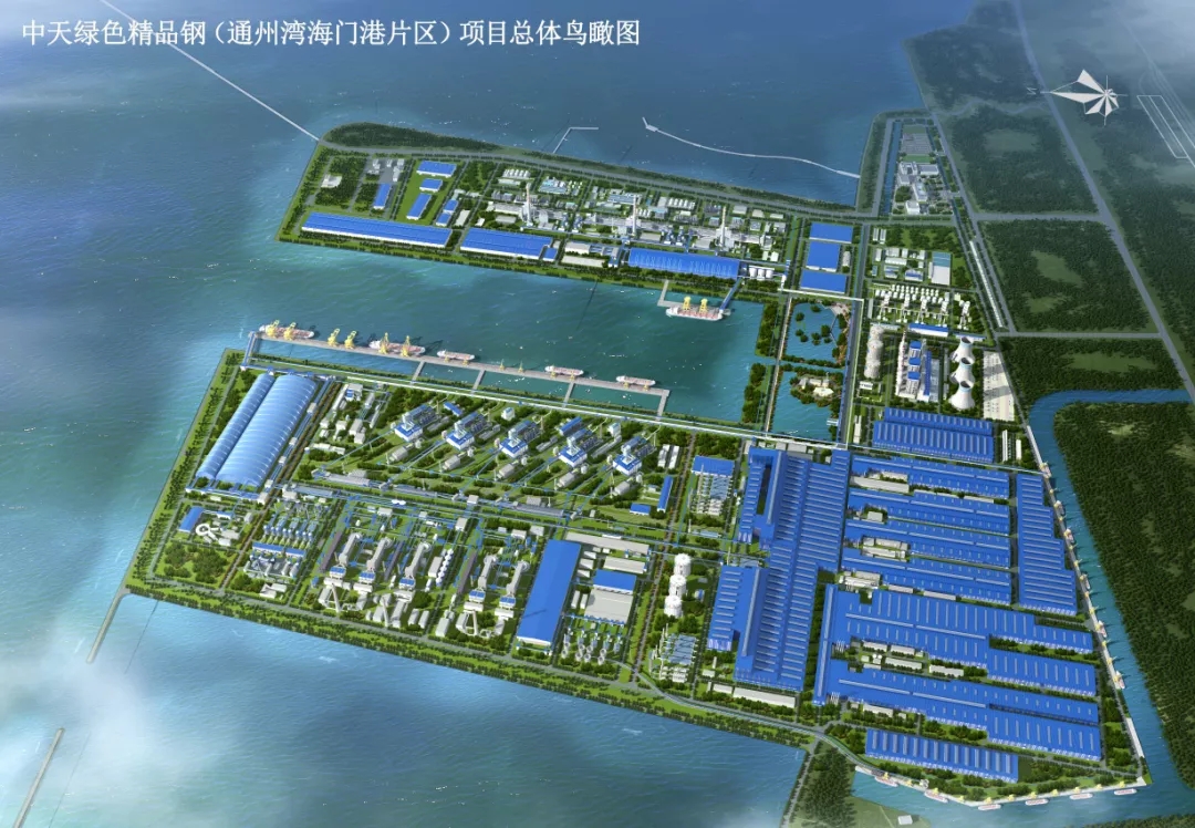 中天绿色精品钢项目是江苏省贯彻落实长江大保护战略,推动钢铁产能由沿江向沿海转移的重点示范项目。项目总投资约1000亿元,规划钢铁产能2000万吨,项目以“大型化、高效化、集约化、绿色化、智能化”设计理念为指导,按照“装备一流、环保一流、品牌一流、管理一流、效益一流”的战略目标,高起点定位、高水平规划、高标准建设千亿级高端绿色临港钢铁产业园,一期项目建成达产后,预计将带动周边配套的工业和服务业80000人就业;该项目也是南通市深入落实长三角一体化战略、建设通州湾新出海口的开港项目,备受社会各界瞩目。