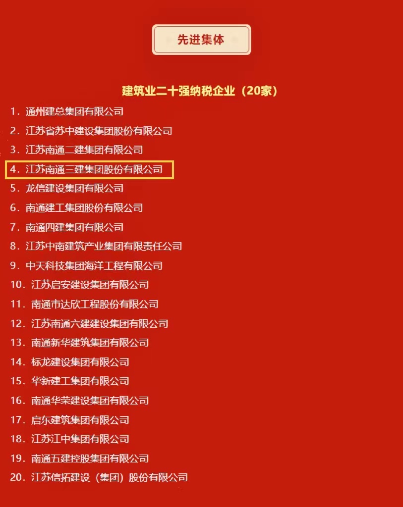2月3日上午,南通市委、市政府召开全市建筑业发展大会。市委副书记、市长吴新明,市政协主席黄巍东,市人大常委会常务副主任、党组副书记庄中秋,市委副书记、宣传部部长沈雷等领导出席会议。江苏省住建厅副厅长王学锋到会讲话。乐鱼游戏官网登录集团董事长黄裕辉参加会议。继获海门区建筑业十强贡献奖等荣誉后,乐鱼游戏官网登录在本次会议上又获南通市委、市政府授予的“南通市建筑业二十强纳税企业”荣誉。