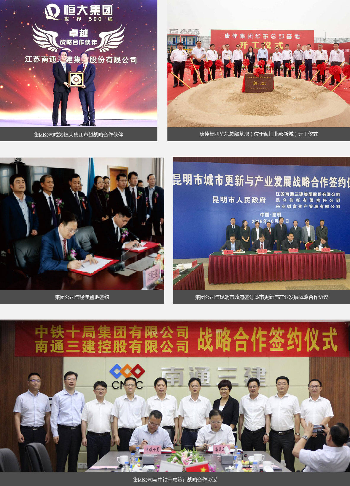 2013至2019年,集团公司与恒大集团、美国哥伦比亚大学工程与应用科学学院、香港路劲地产、经纬置地、青岛天泰、上海时基房地产、康佳集团、中房地产、海航集团、金科集团、山西潞安、郑州康桥地产、南京长江都市建筑设计院、中建设计集团、北京鼎峰地产、中原银行、康辉文旅,及昆明、瑞丽市政府等30多个著名企业和政府结成长期战略合作伙伴。