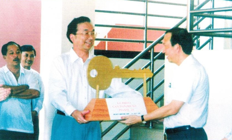 时任乐鱼游戏官网登录董事长施孨将海门在国外 第一个双包工程——新加坡警察训练营项目钥匙交付