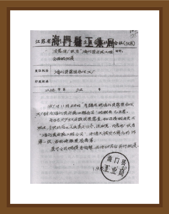 1958年,在社会主义建设蓬勃兴起的火热年代,海门县营造合作工厂成立,同年改为“海门县建筑工程公司”(即乐鱼游戏官网登录前身),开启了海门建筑历史新纪元,开辟了乐鱼游戏官网登录发展新征程。