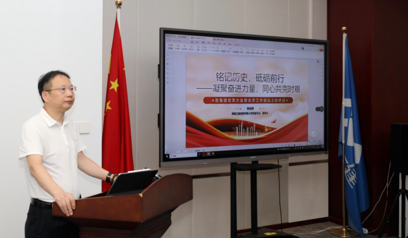 会议在庄严的国歌声中拉开帷幕。黄裕辉董事长作题为“铭记历史,砥砺前行——凝聚奋进力量,同心共克时艰”的核心讲话,从三个维度深入分析集团当前困境和挑战,并阐述具体破局路径:
